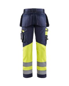 Slitstark, komfortabel och praktisk varselbyxa i 100 procent bomull med varselpartier. Byxan med en något smalare passform har en go retrolook och kommer i antingen blått med vita kontraststickningar eller svart utförande med grå stickningar.