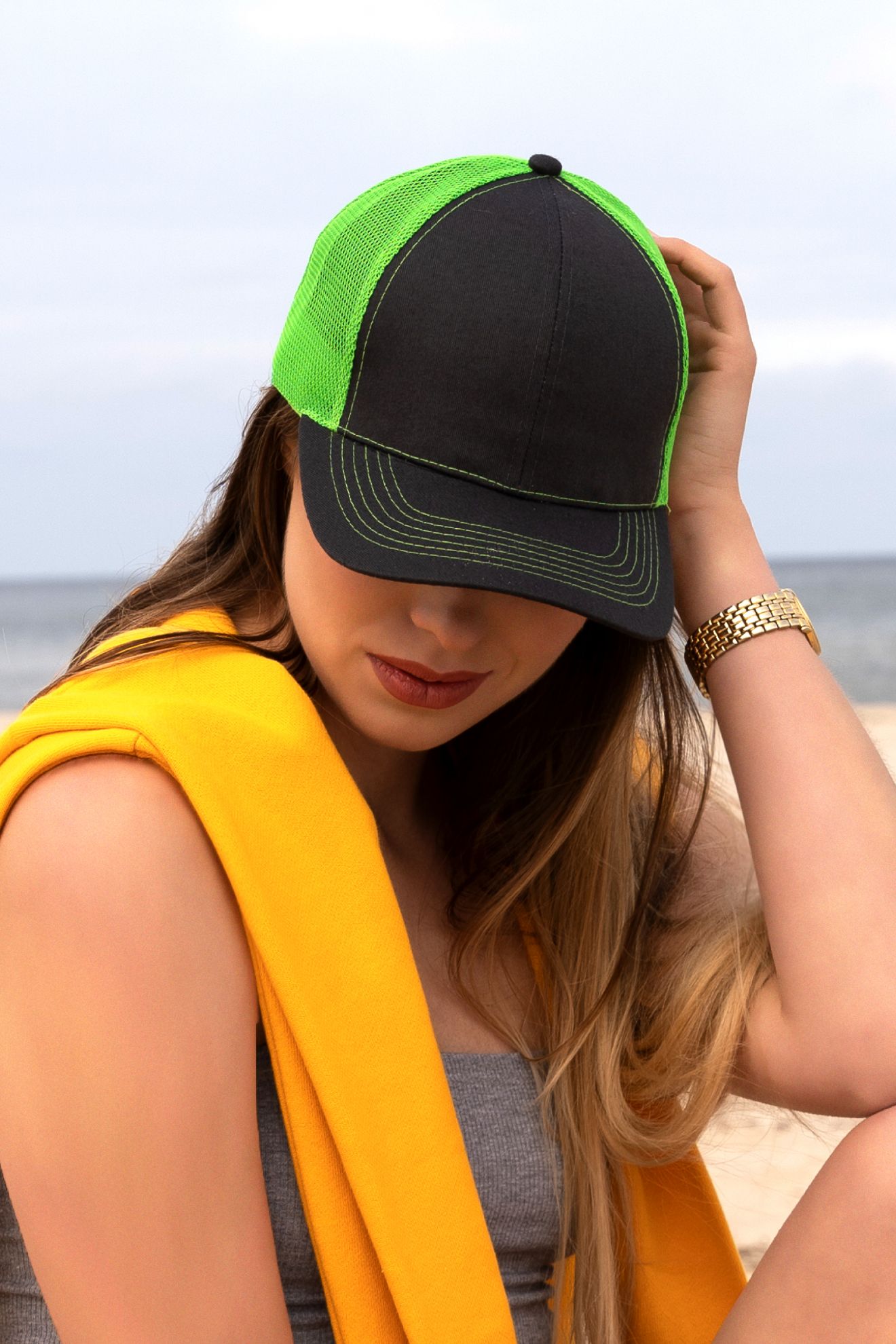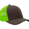 Keps med borstad kraftig grafitgrå bomull på front och skärm. Färgglatt kontrastfärgat nät bak som ger bra ventliation. Matchande kontrastfärgade sömmar på skärmen. Modernt snap back pro plastspänne bak för storleksjustering.