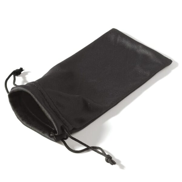 Påse i mikrofiber för glasögon. Materialet gör det även möjligt att rengöra glasögongen med denna påse.