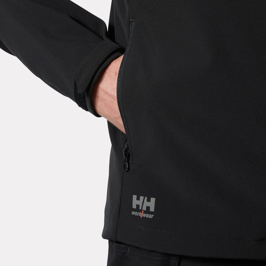 Jackan har robusta material som YKK®-dragkedjor och membranbelagt softshellmaterial. Den bästa softshelljackan för arbetsplatsen inkluderar också viktiga säkerhetsfunktioner. Vi har designat den elastiska justeringen av fållen så att den håller sig kvar i fickan och inte fastnar i något. Reflekterande sömmar på axlarna och över ryggen förbättrar synligheten.