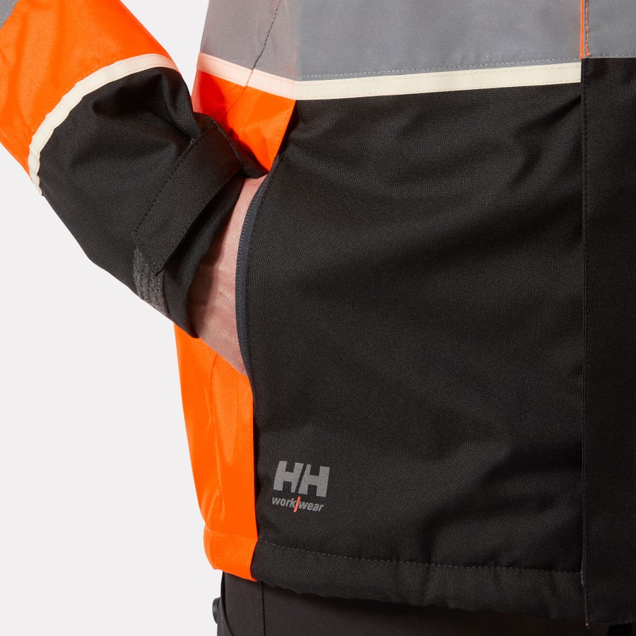 Vinterjackan UC-ME kombinerar ett lätt material, funktionell design och smarta detaljer för att ge överlägsen prestanda på arbetsplatsen under vintern. Ledade ärmar med sömfria axlar och förlängd ryggdesign ger komfort och rörlighet. Skräddarsy din passform med vertikala och horisontella huvjusteringar, samt justerbar nederkant och justerbara ärmslut. Den avtagbara huvan är hjälmkompatibel för att ge säkerhet och mångsidighet. En elastisk justering av nederkanten nås genom fickan, vilket gör att man inte riskerar att fastna. De reflekterande ränderna på denna vinterjacka med ökad synlighet ger bättre säkerhet.