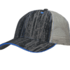 Keps i Wood tryckt mönster och nät på baksidan. Strukturerad med 6 paneler och förböjd skärm. Tygrem med kardborrspänne