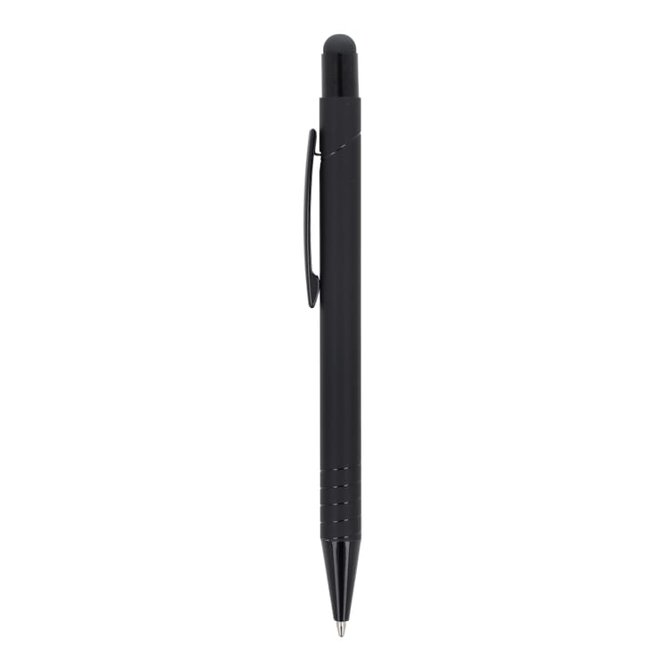 Kulspetspenna med metallklämma, stylusfunktion och mjuk yta. Tryckknappen, klämman och ringarna har matchande glänsande färger. Kulspetspennan levereras med en blå jumbo-refill.