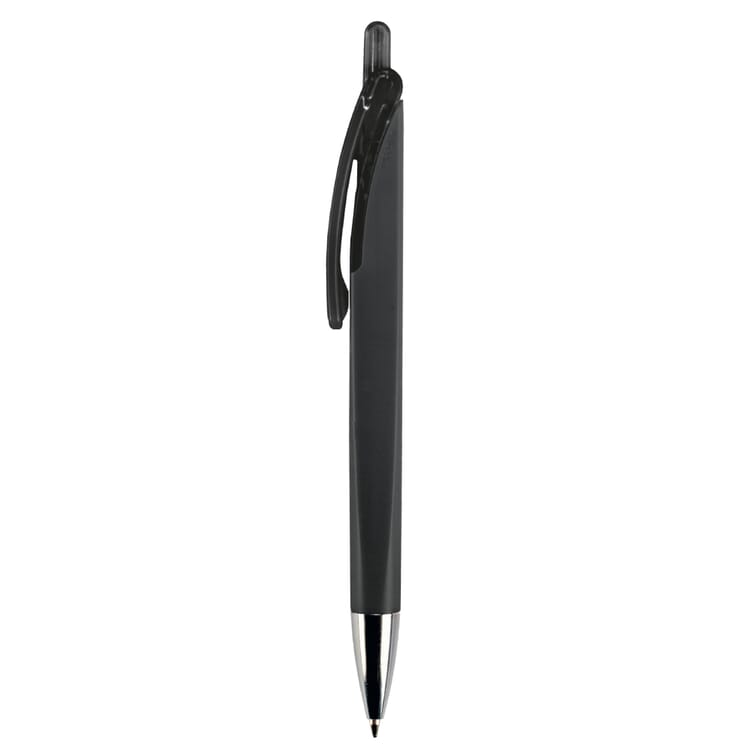 Kulspetspenna med soft-touch yta. Pennan har metalltipp, transparent clip och en påfyllningsbar jumbopatron i blått bläck.