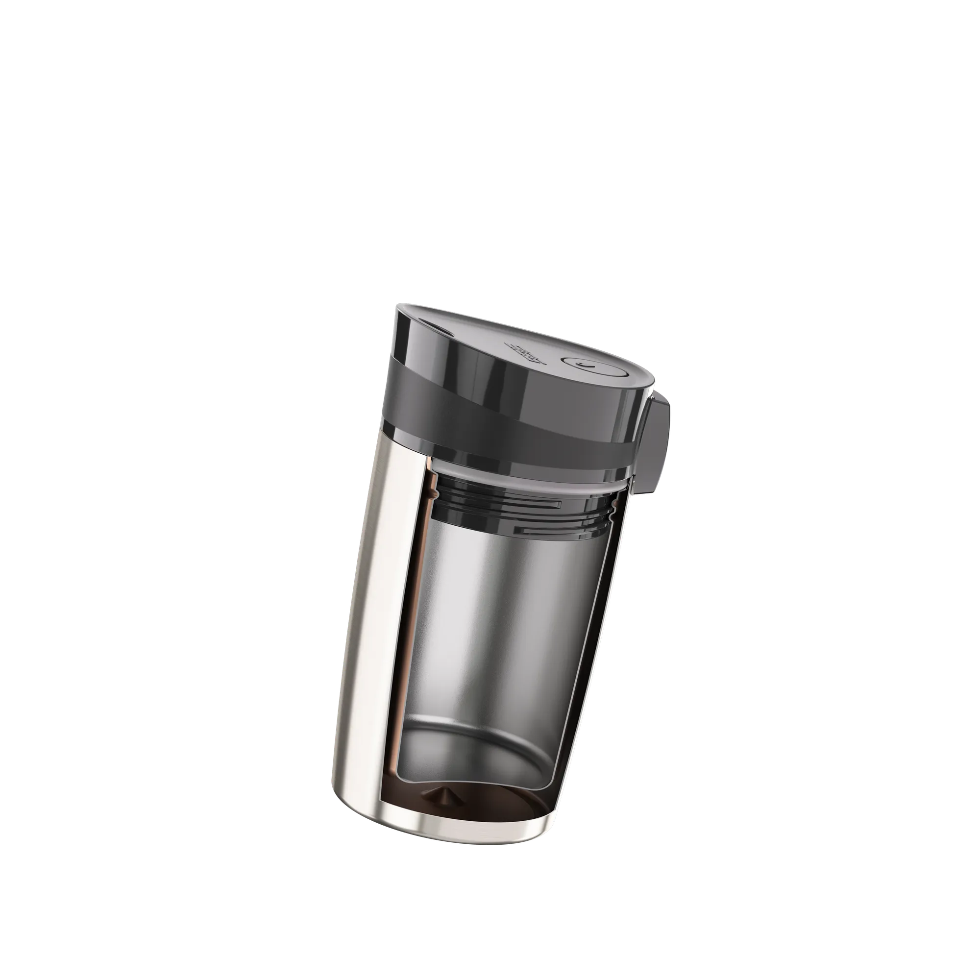 Den innovativa ”Push to Open”-funktionen håller drycken säkert på plats tills du vill dricka. Så fort du släpper knappen stängs munstycket igen, vilket gör muggen helt läcksäker – även om den välter.
