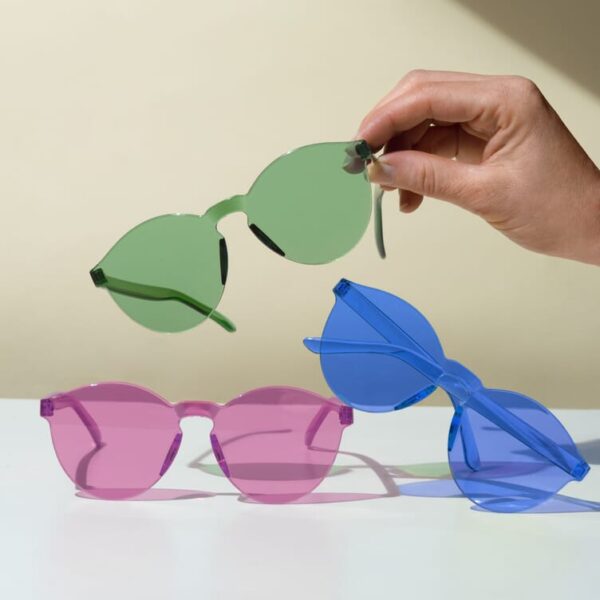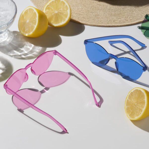 Ljusa solglasögon i retrostil med enhetlig pastellton och lins. Linsen har ett UV-400 filter.