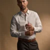 Herrskjorta i slim fit med stretch för total komfort. Krage med dold knappknäppning och två knappar på manschetterna. Skräddarsydd kropp med eleganta pärlemorknappar.