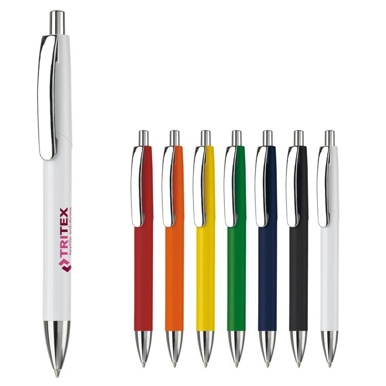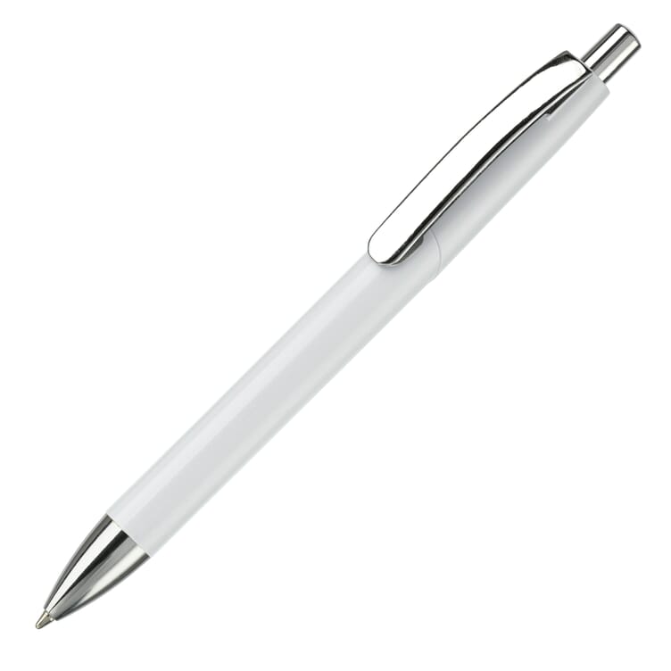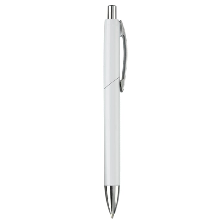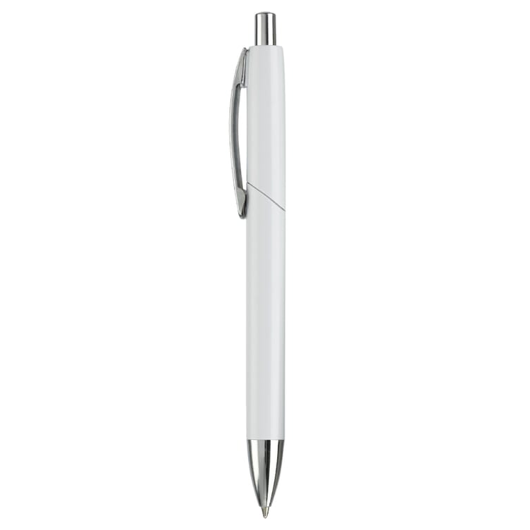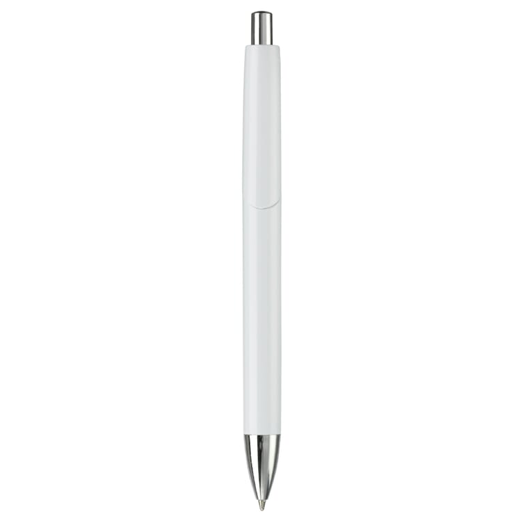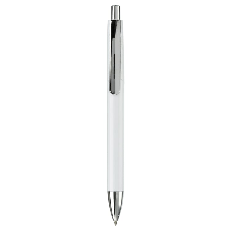 Kulspetspenna med solida delar, tryckknapp, klips och spets i metall. Jumbo patron med blått bläck.