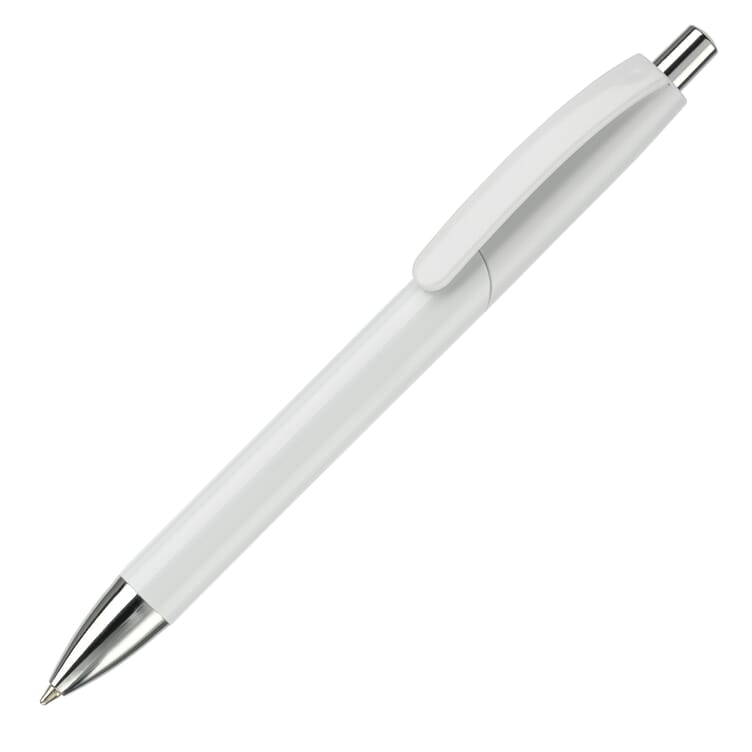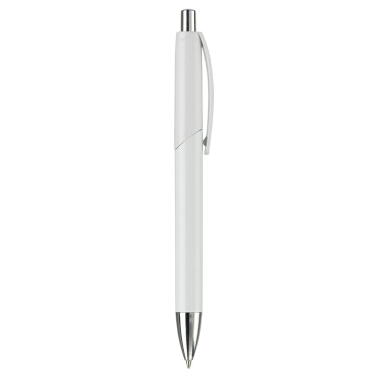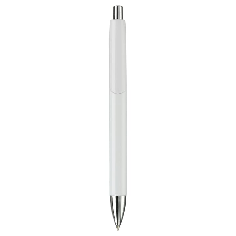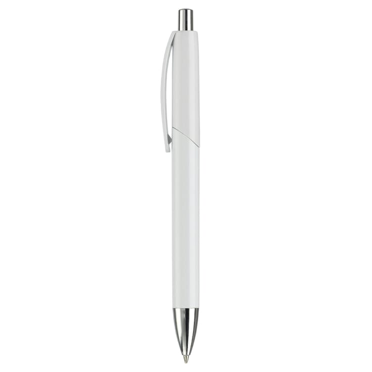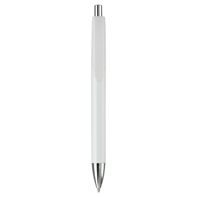Kulspetspenna med klips, tryckknapp och spets i metall. Jumbo patron med blått bläck.