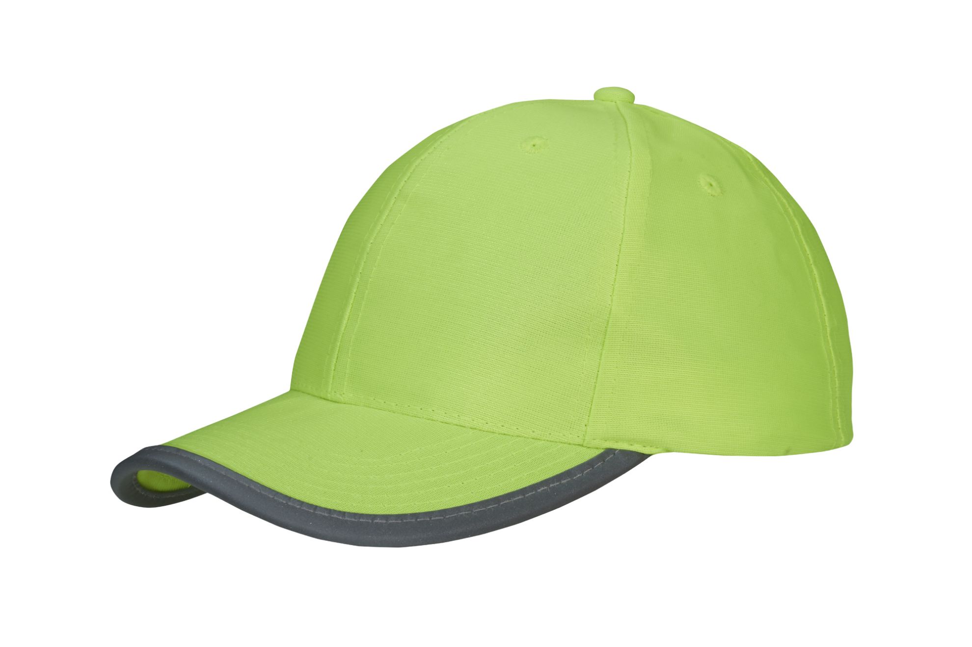 Varselkeps med reflekterande kantband runt skärmen för hög visibilitet. Strukturerad med 6 paneler och förböjd skärm som håller önskad form. Kardborrspänne i reflekterande material bak för snabb och enkel justering av storlek.