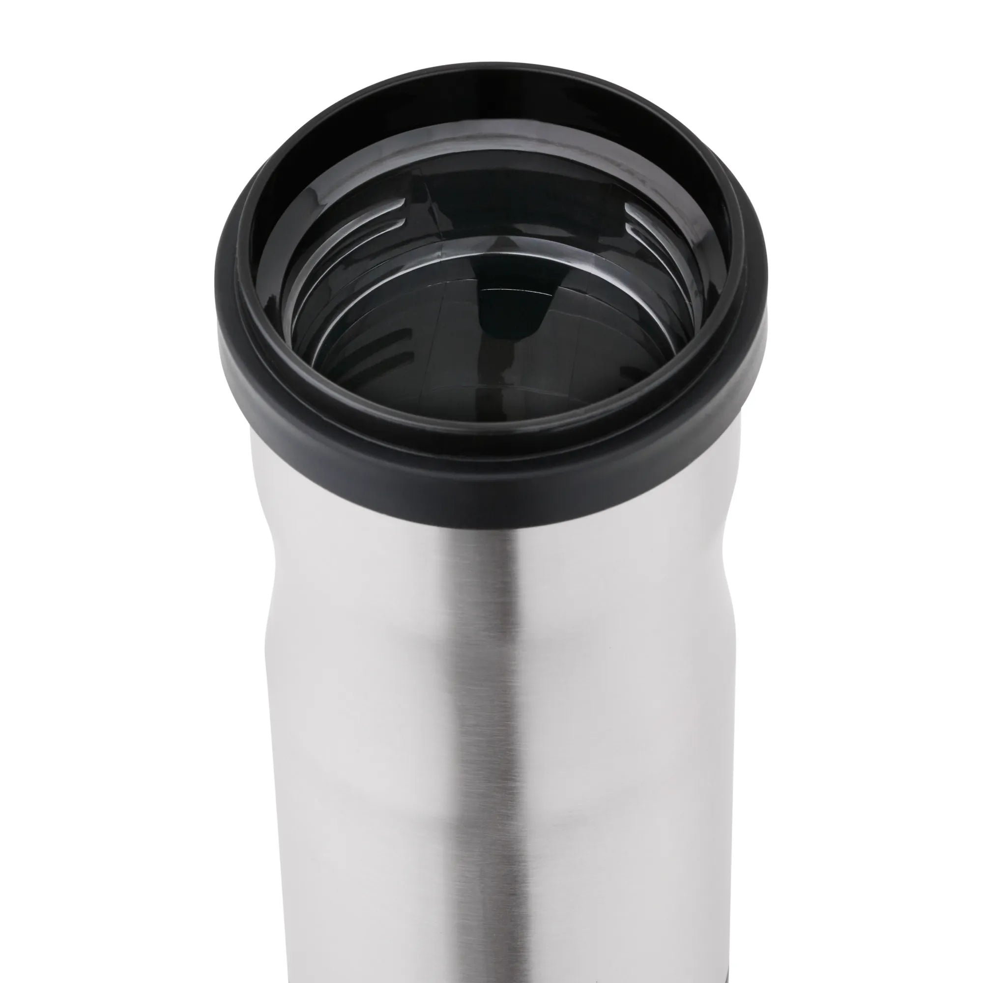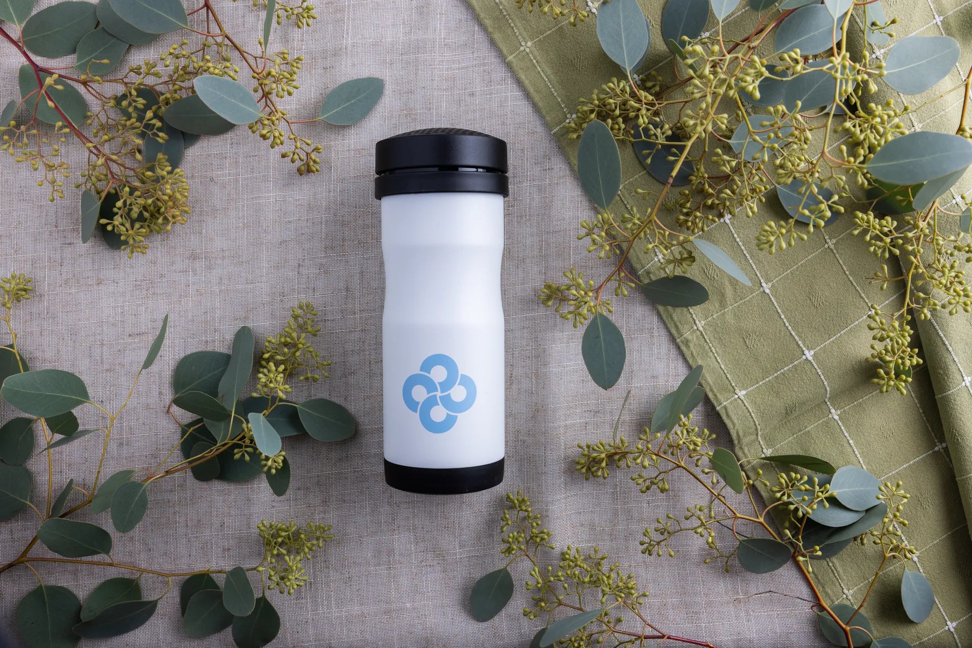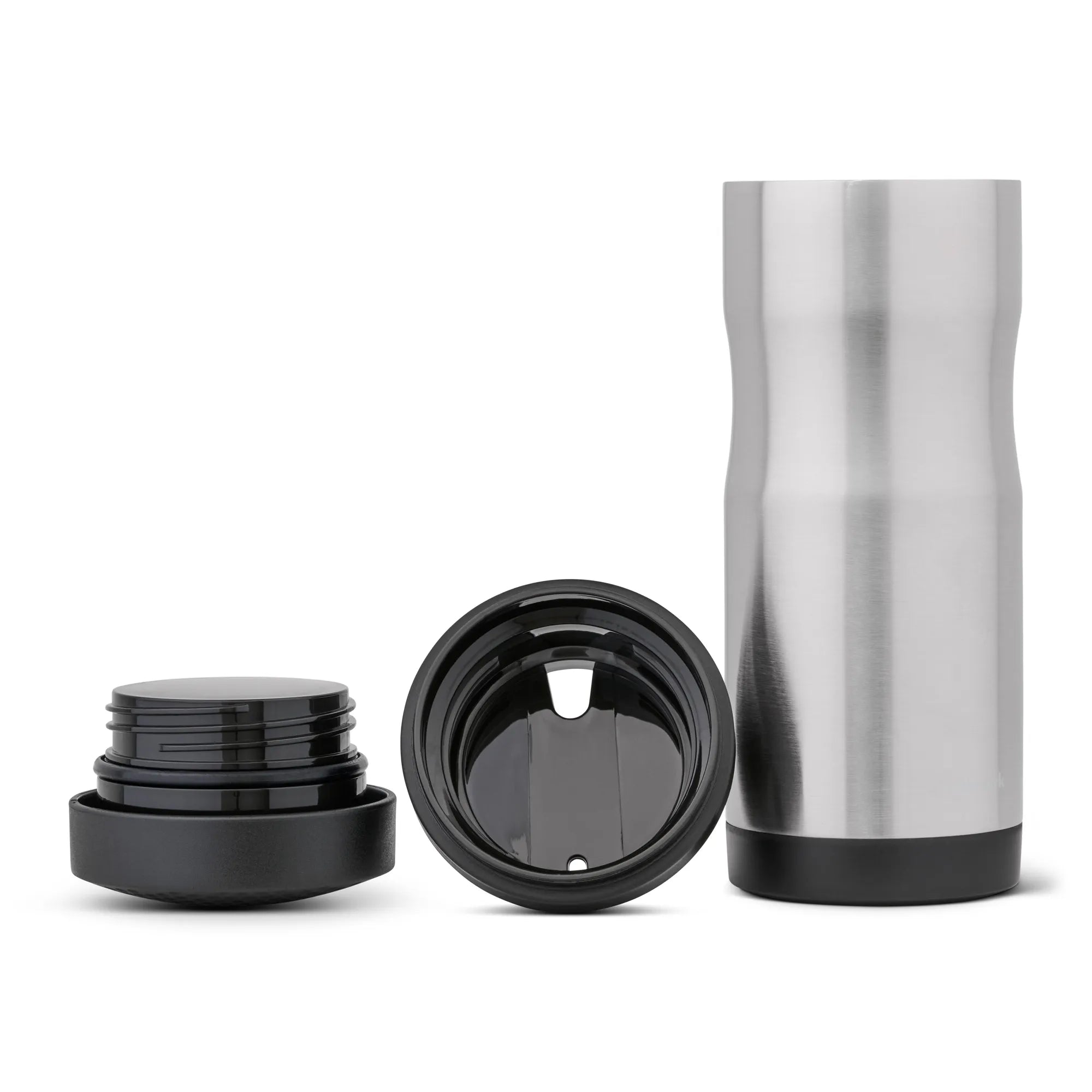 Muggen är tillverkad av högkvalitativt 18/8-stål, varav 92% är återvunnet. Den har en klassisk tvådelad kork, en del att dricka ur och en del som sluter helt tätt när den ska packas ner. Det diskreta mönstret på överdelen är inspirerat av en golfboll, en blinkning till modellens namn, som kom från den legendariska PGA-touren.