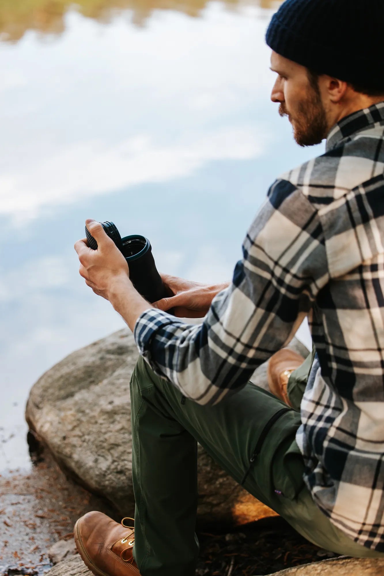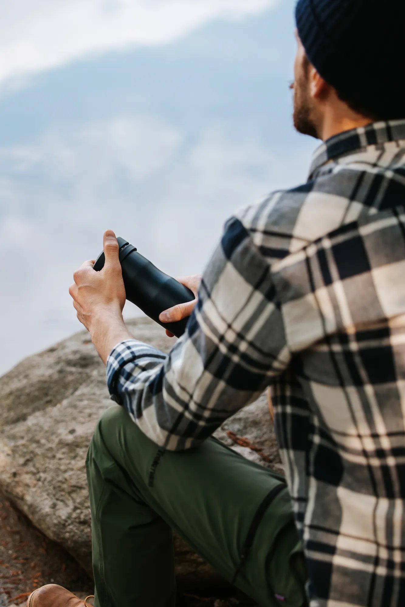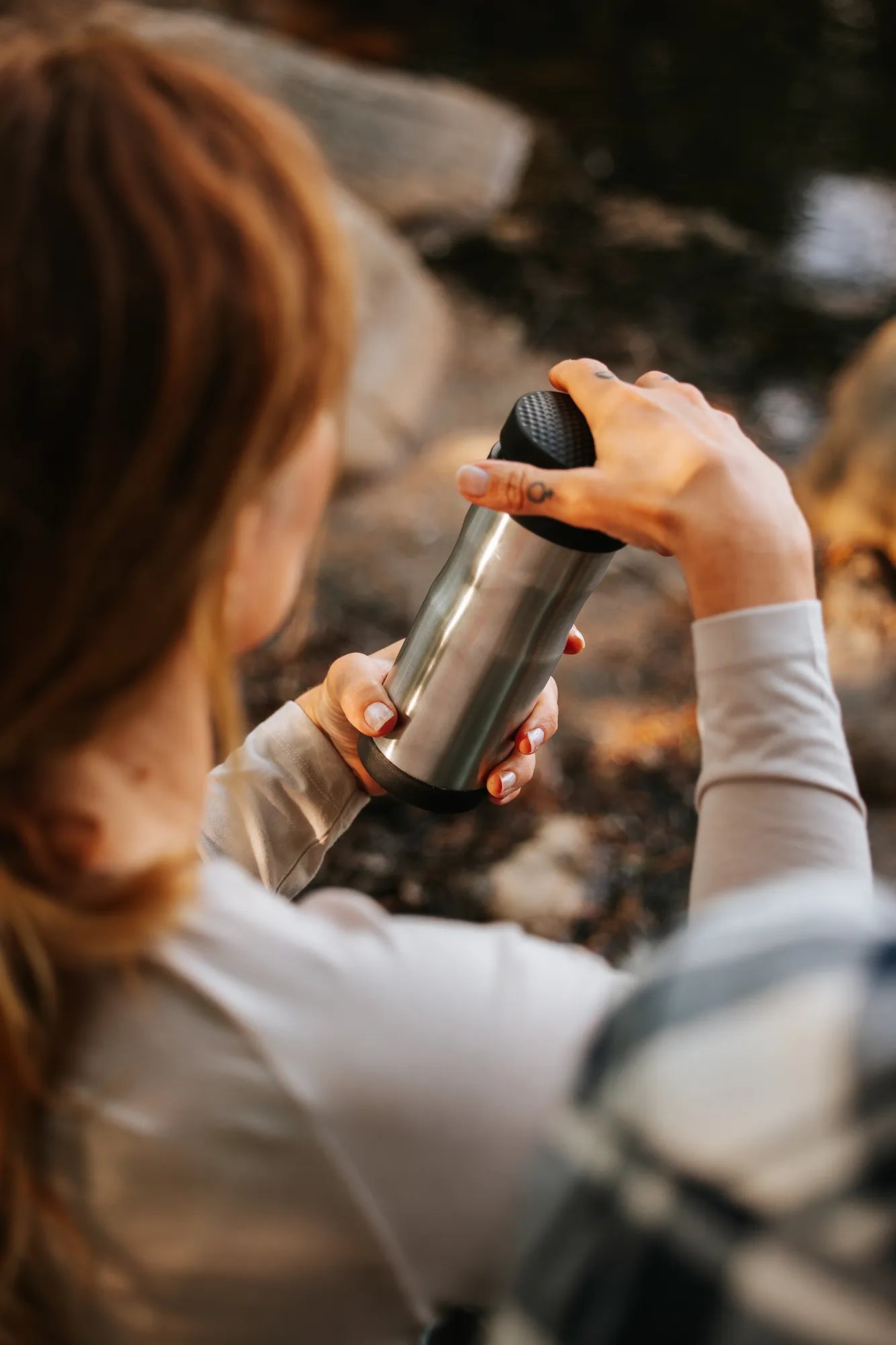 Vildmark PGA 0.32 L är en enkel och tålig termosmugg tillverkad av återvunnet rostfritt stål. Den är skapad för att användas varje dag, oavsett om du är på väg till jobbet eller ska ut i naturen. Den rymmer lagom mycket kaffe för en person, håller tätt och är lätt att ta med sig.